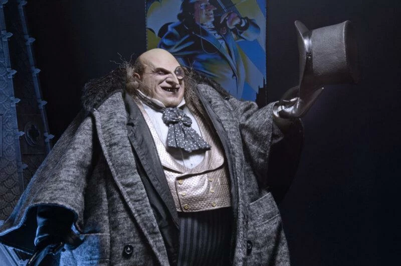 - An all-new removable fabric coat, removable top hat, “Cobblepot for Mayor” mini-poster, eye monocle, cigarette in holder and half-eaten fish accessories