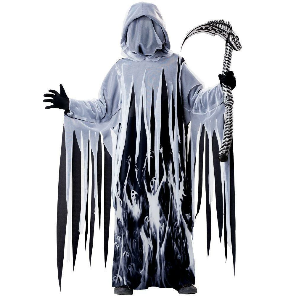 If I should die before I wake, bless me Lord my soul to take… You will have many souls to take with this terrifying Soul Taker Costume! The outfit includes a long dark robe with an attached hood and a face cover.