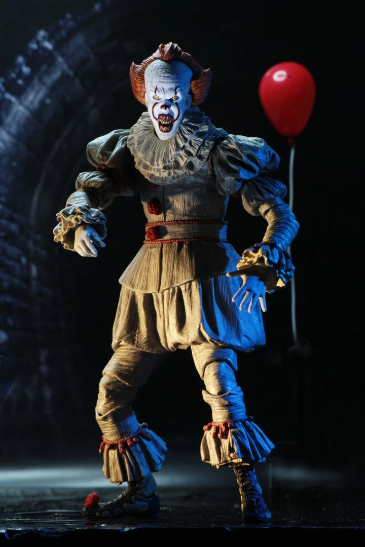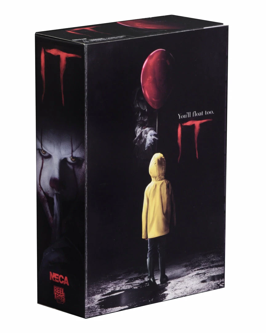 From the acclaimed 2017 horror film IT, drawn from the pages of Stephen King’s original novel, NECA presents the definitive version of Pennywise in action figure form! Based on Bill Skarsgård’s portrayal of the nightmare-inducing clown, this 7” scale figure has been painstakingly detailed to be as accurate to Pennywise’s ornate costume as possible. To recreate the most terrifying scenes from the movie, the fully articulated figure has everything needed to frighten the neighbourhood.