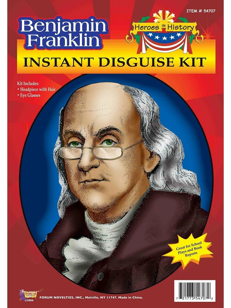 Your Ben Franklin costume wouldn’t be complete without the Wig and Eyeglasses Kit. This accessory includes a long grey wig with a bald top, and a pair of eyeglasses just like the ones the famous inventor wore.