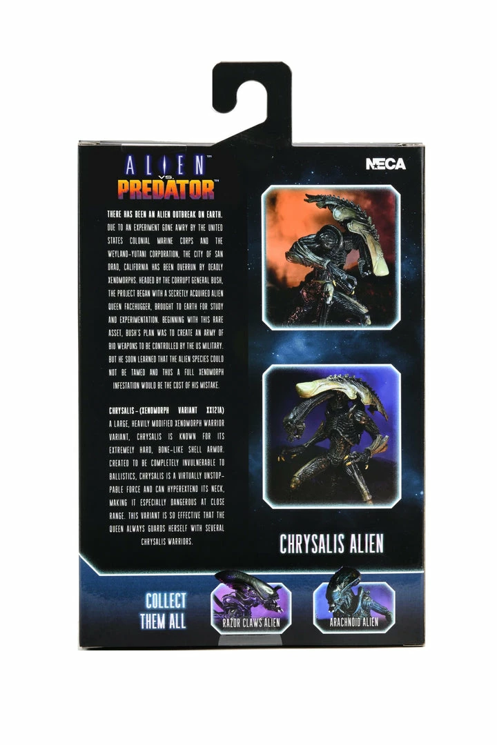 The classic 1994 arcade game Aliens vs Predator pre-dates the AVP movie, but what if….? NECA presents the mashup you’ve been dying to see! The unique Alien adversaries seen in the video game get the movie treatment, with new deco, imagining their look had they been included in the subsequent movie. The figure uses the super-poseable Ultimate body, with over 30 points of articulation and bendable tail.
