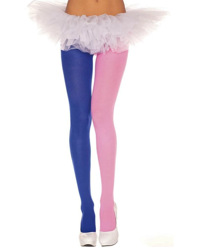 Music Legs Two Tone Opaque Pink & Blue Pantyhose. Opaque blue and pink jester tights.