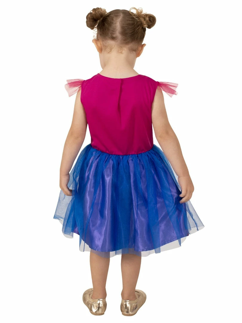 - Bodice is satin with digitally printed character motif