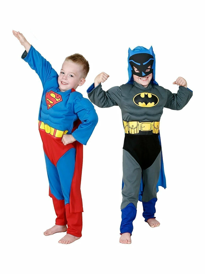 Can’t decide which Superhero you prefer? Fear Not! This clever reversible costume allows you to become either of the most famous DC Comics characters – the ultimate Batman AND the Man of Steel, Superman! By day, you are the eccentric Gotham City tycoon Bruce Wayne – or perhaps you are the mighty Metropolis Journalist Clark Kent – but by night you are Batman… or Superman… YOU decide. Doubly clever crime fighters!