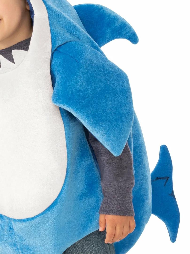 Baby shark, doo doo doo doo doo doo , baby shark, doo doo doo doo doo doo, baby shark, doo doo doo doo doo doo Baby shark! We have all sung it and danced to it, and kids and adults of all ages secretly love it. Now you can dress your adorable little ankle biter in this rather large ocean biter. From the sea to your toy box, this cuddly Baby Shark costume comes complete with the famous song plus a dorsal fin for an added extra!
