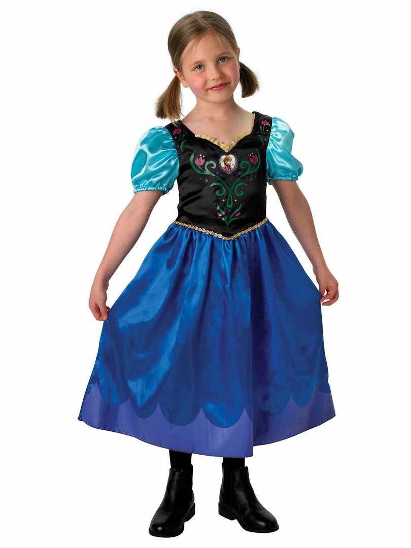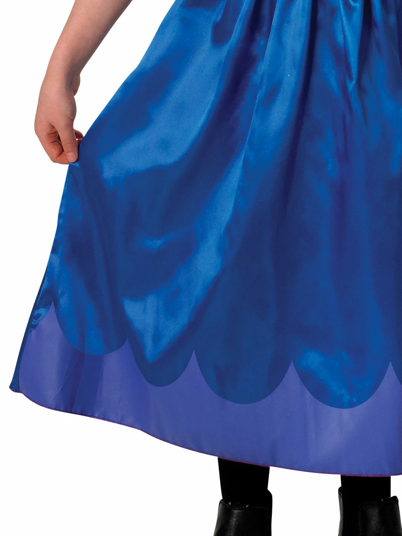 - Bodice is satin with digitally printed character motif and floral designs in glittery patterns plus gold trim