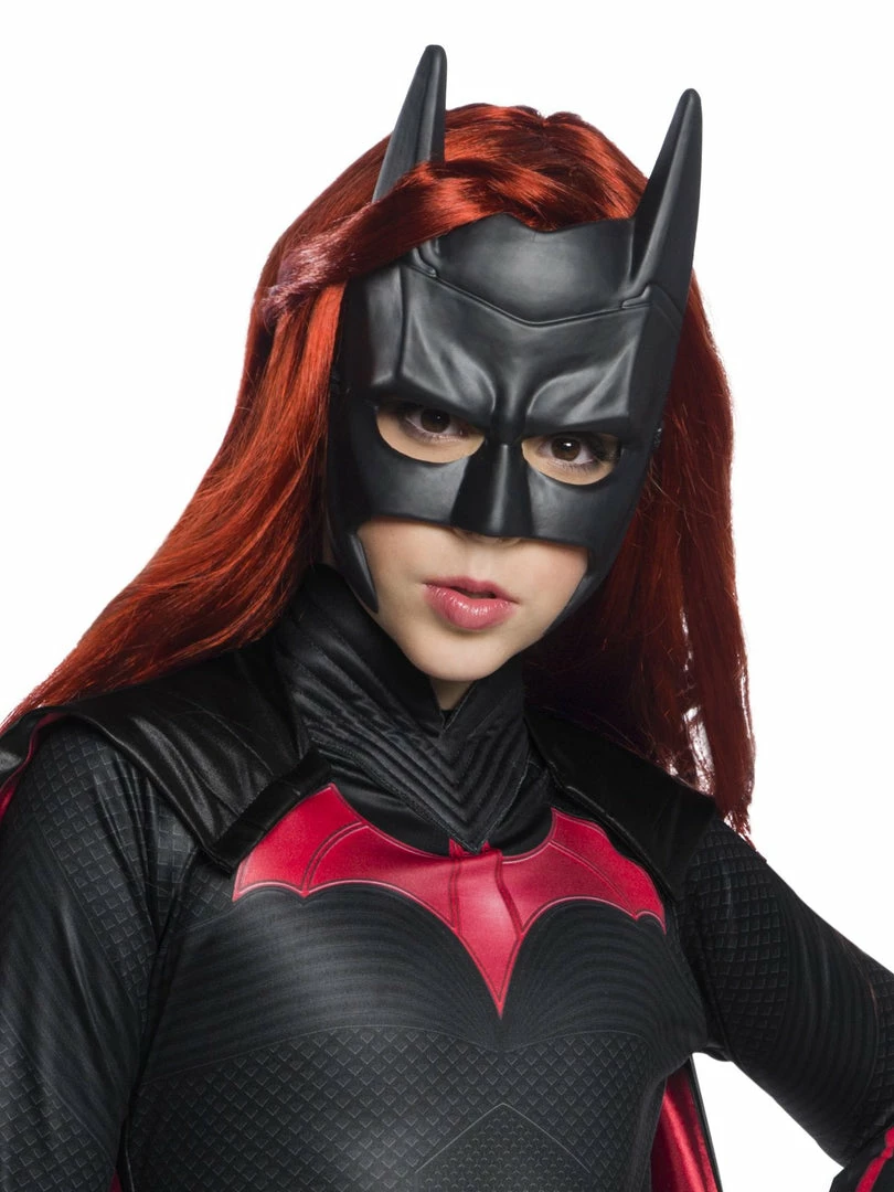 - EVA moulded foam belt has painted details and closes with velcro tabs at rear. Trademark Batwoman face mask is moulded plastic with an elastic strap and velcro tabs