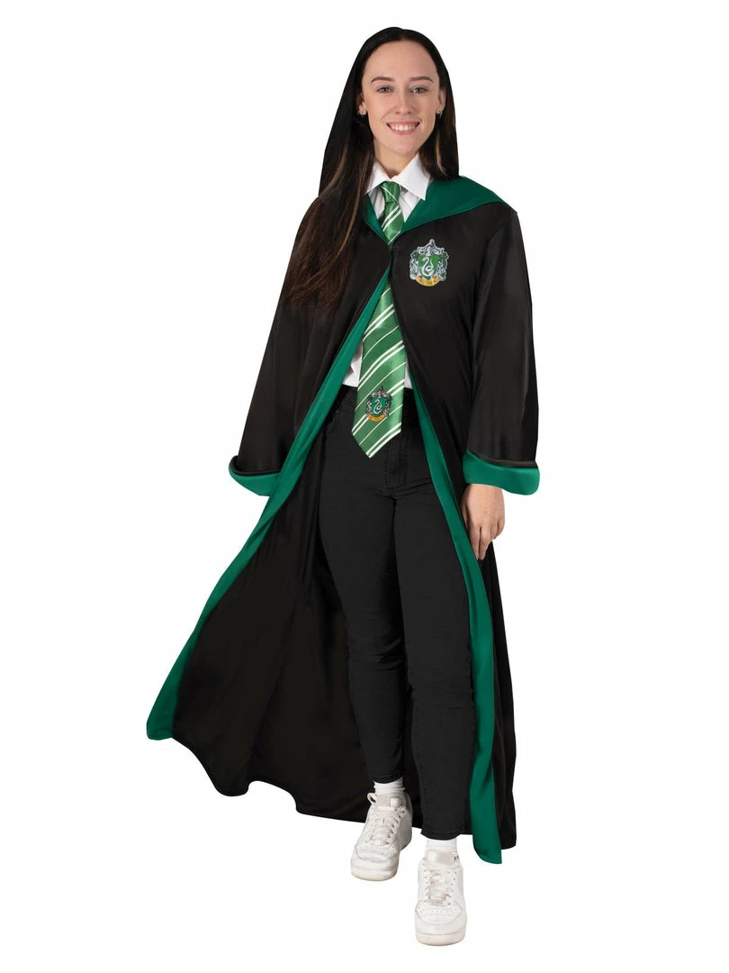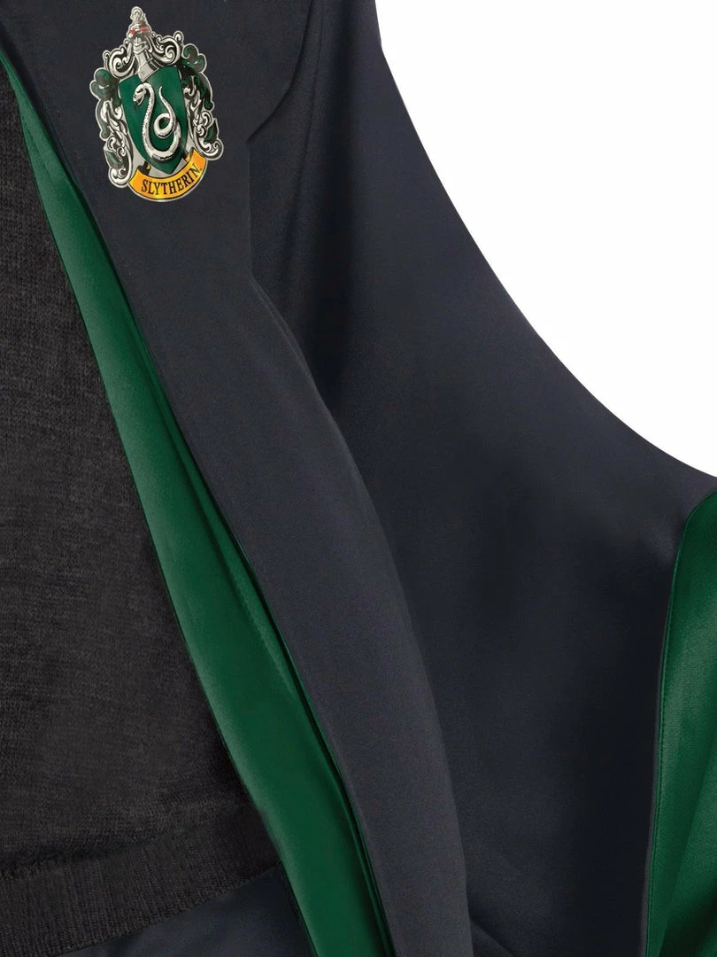 - Attached hood with lining in house colours that extends down front of robe