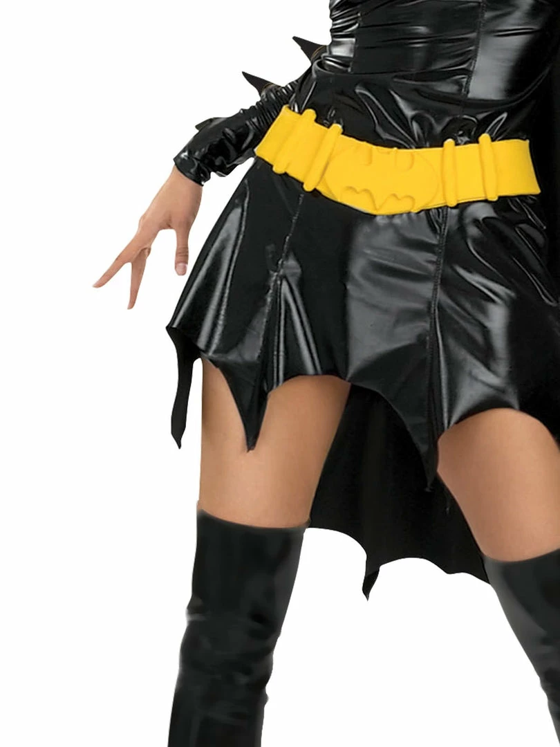 - Vinyl Look Dress with Bat Emblem on chest plus scalloped hemline on skirt
