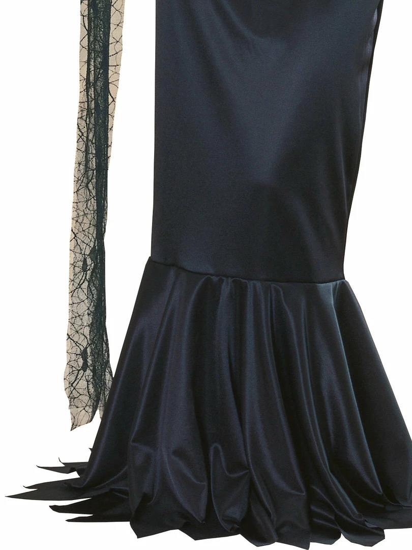 - Spider web look lace panels draping from sleeves