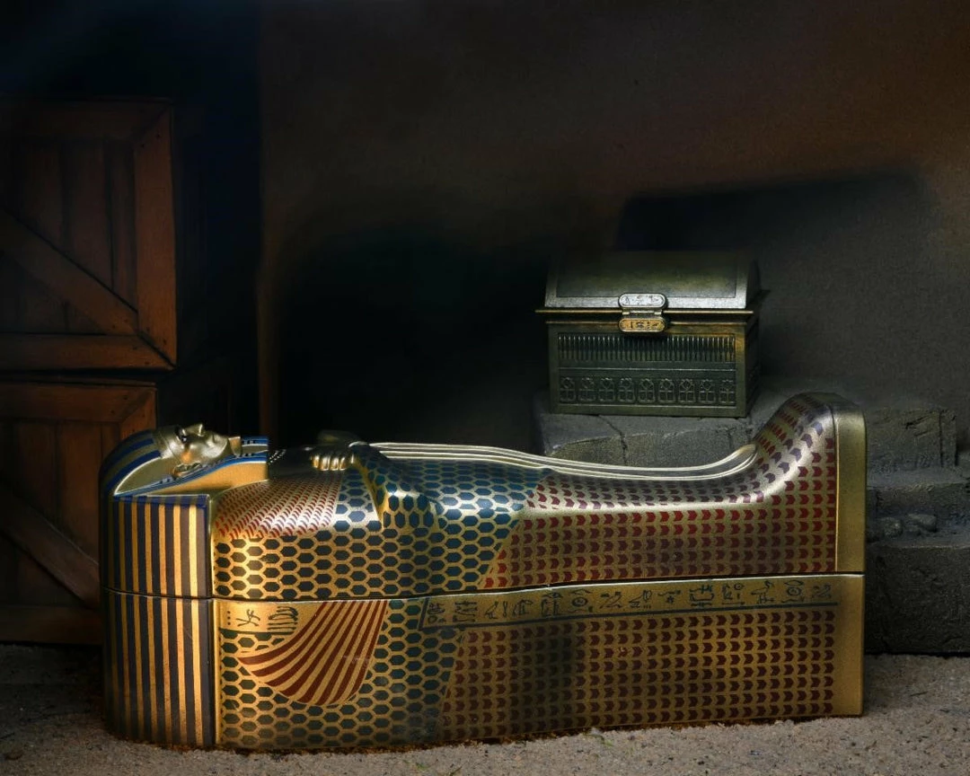 Build even bigger scenes and dioramas with this accessory set for NECA’s Universal Monsters ‘The Mummy’ action figure. The star of the set is the elaborate sarcophagus, which measures over 9” inches tall and has a removable lid with movie accurate deco and intricate printed pattern. A perfect accompaniment to your Mummy Collectable figurines. (Action figure pictured sold separately)